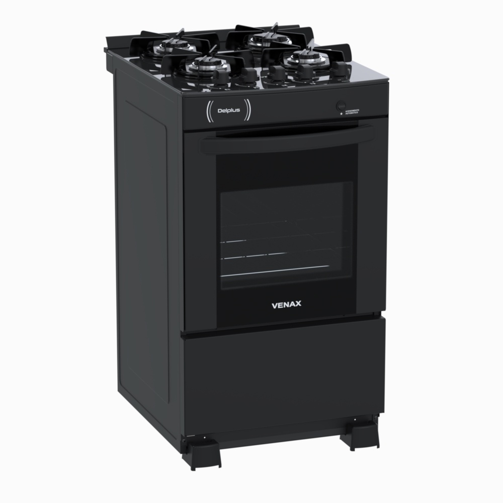 Fogao 4 Bocas Venax Delplus Vitreo Bl Preto Fosco Gas GLP