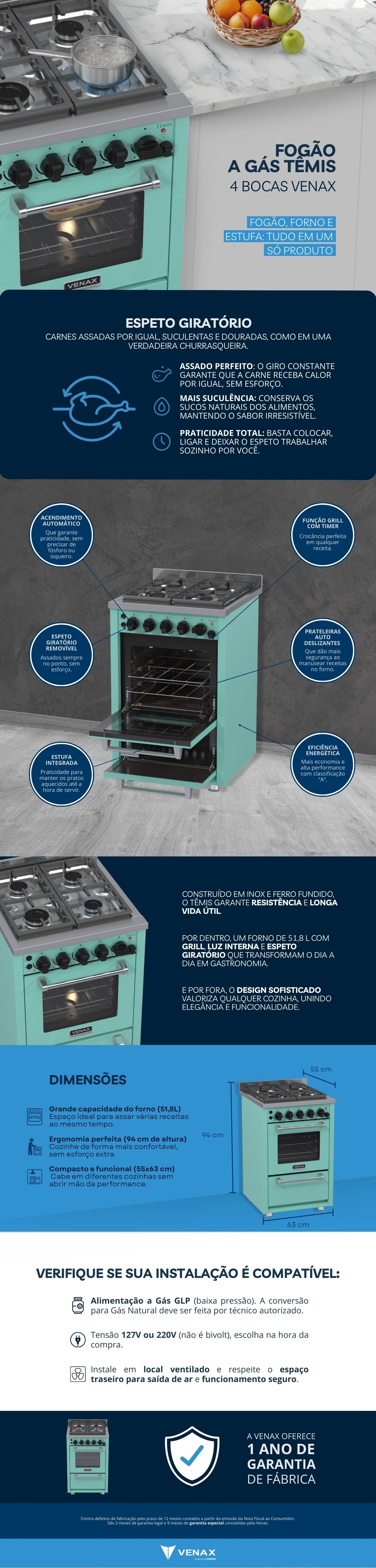 Fogao 4 Bocas Venax Temis Verde GLP