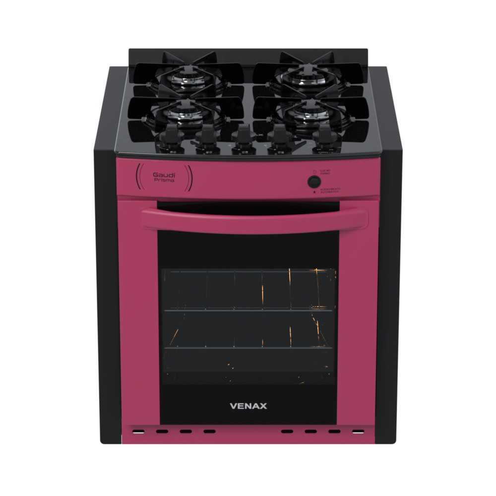 Fogão de Embutir 4 Bocas Gaudi Prisma Vítreo, Mesa de Vidro, com Acendimento Automático Total, Vidro na Porta do Forno, Luz no Forno, Puxador na Porta do Forno am aço, Porta Removível,Duas Grades Deslizantes no Forno, Forno Easy Clean.
