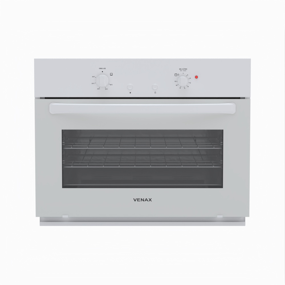 Forno De Embutir a Gás 90 Bianco, Com Acendimento Automático, Ajuste de temperatura em 5 posições, Luz no Forno, Grade de Ventilação Embutida, Puxador em Aço, Duas Prateleiras Deslizantes, Grill de 1250W com Timer de 120 Min,com Vidro Panorâmico na Porta do Forno,Porta Removível, Forno Easy Clean.